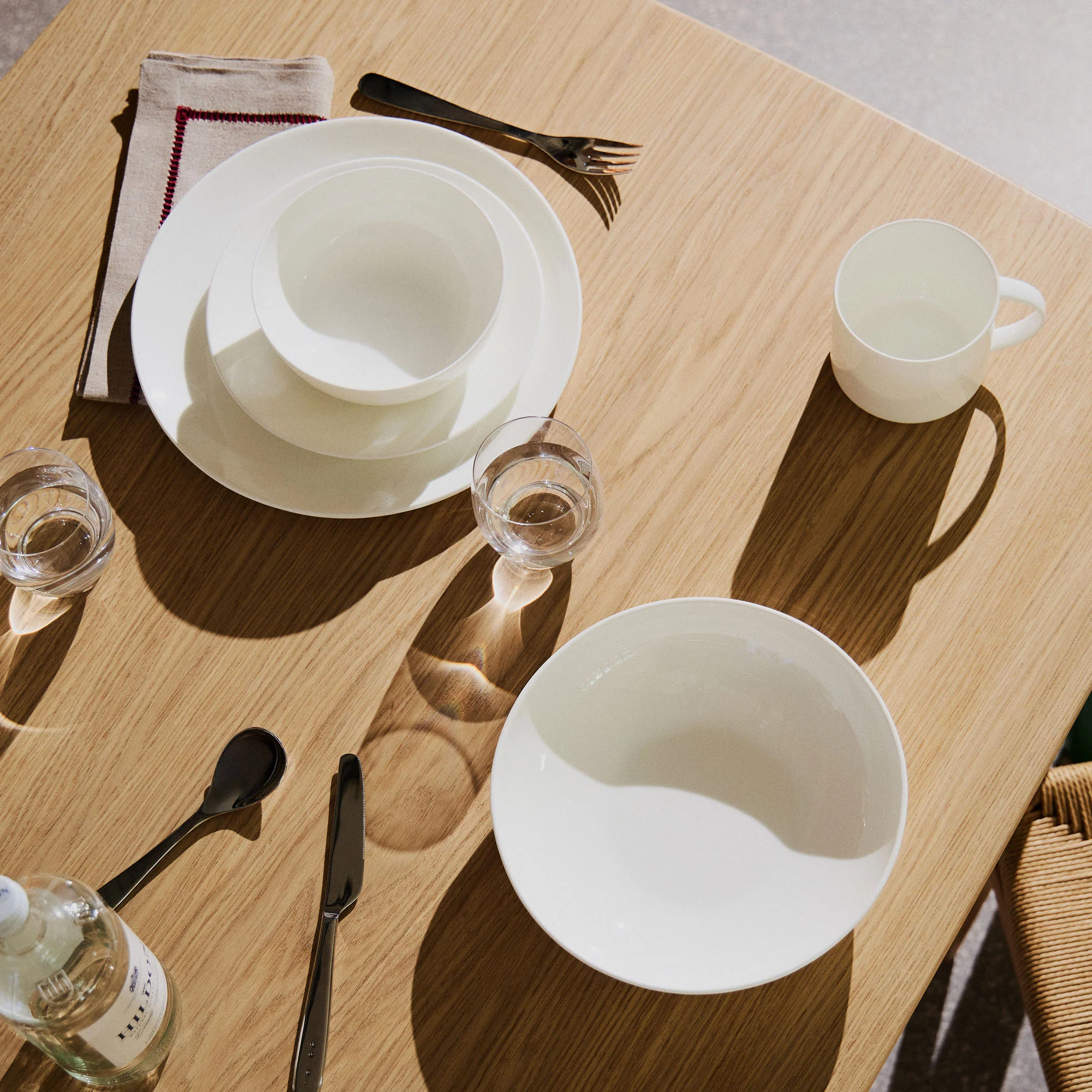 The Arc Bone China Collection is fired at high temperatures for strength, stain resistance, and a luminous white finish.