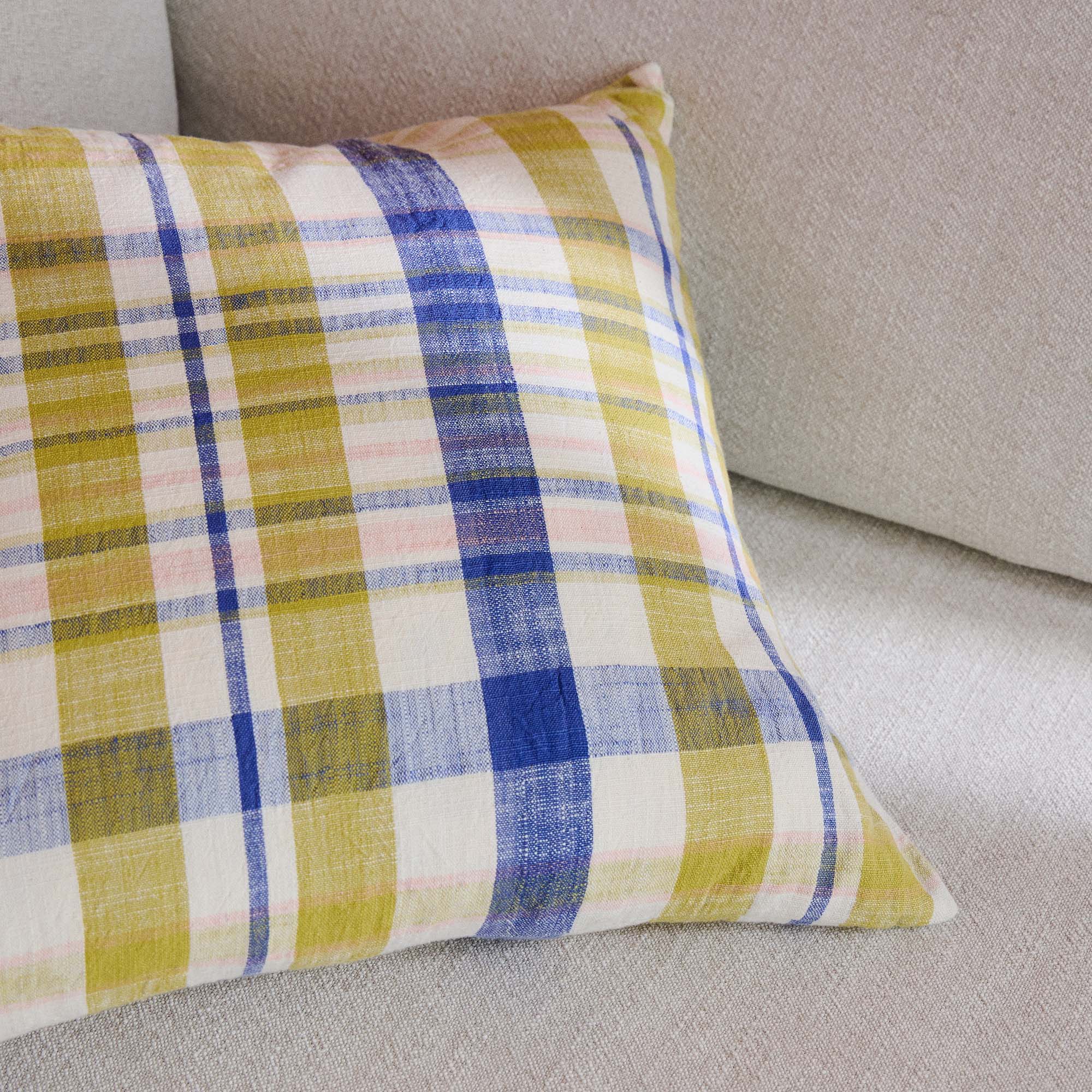 The Marabar cushions are available in five vibrant check patterns across two sizes.Â