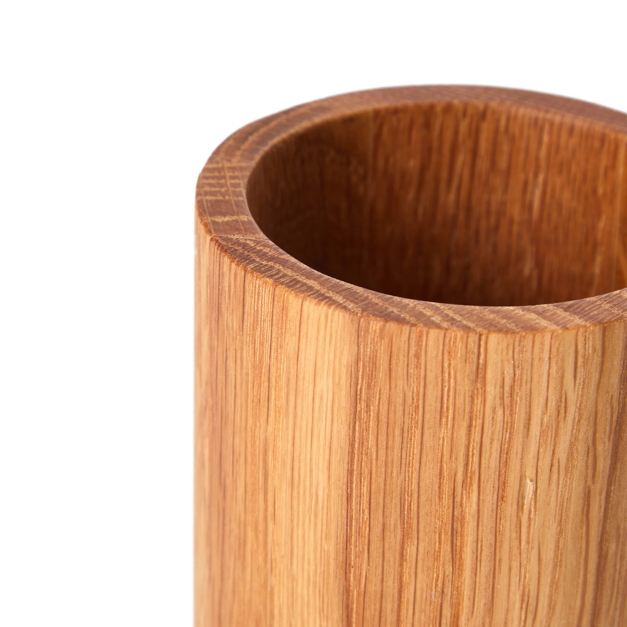 Crafted from oak, the pot comprises capacious storage for your desk essentials.