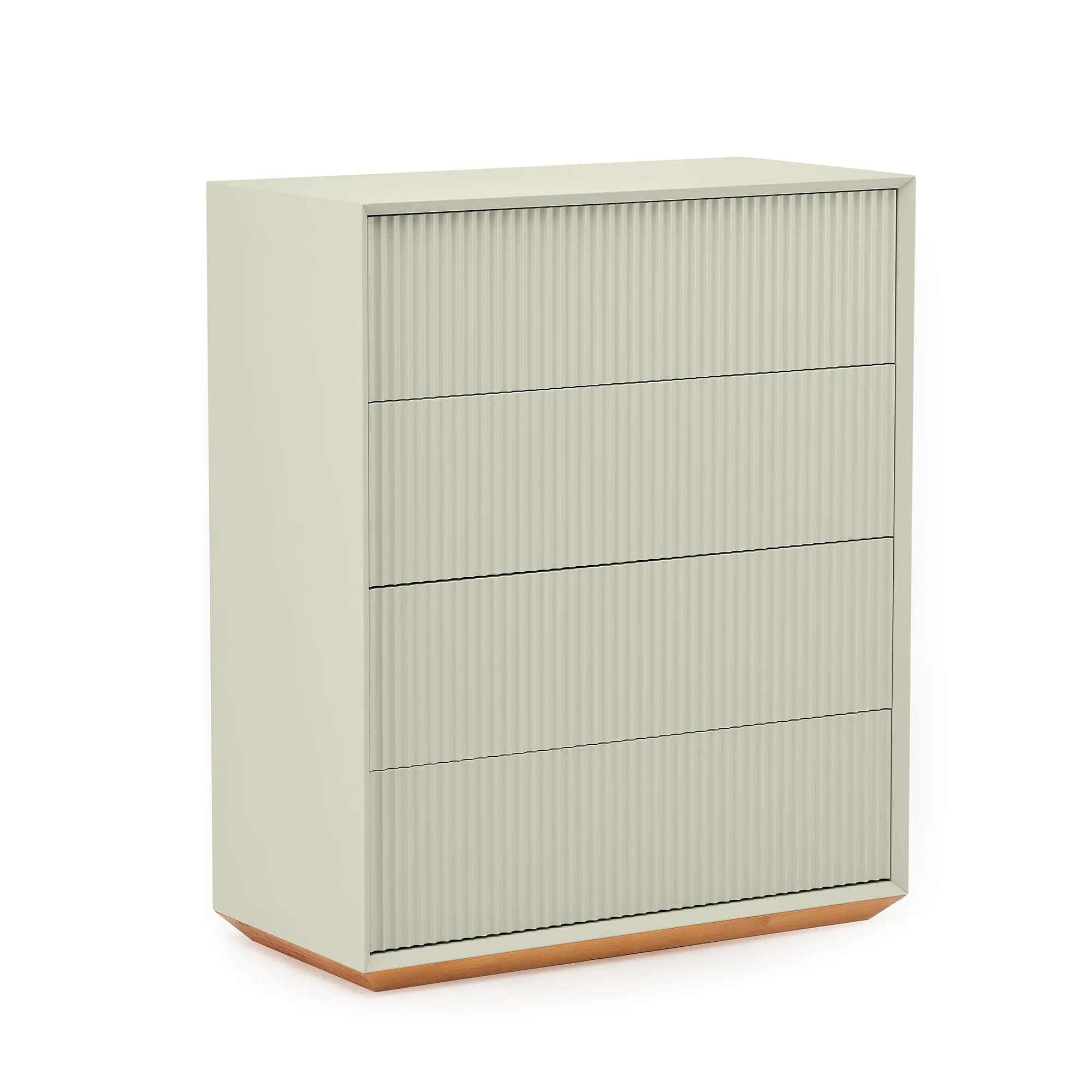 The Pillar 4-Drawer Chest offers four generously sized drawers, all fitted with push-close mechanisms to maintain the integrity of the sculpted front. Its clean, vertical profile makes it ideal for bedrooms or transitional spaces.